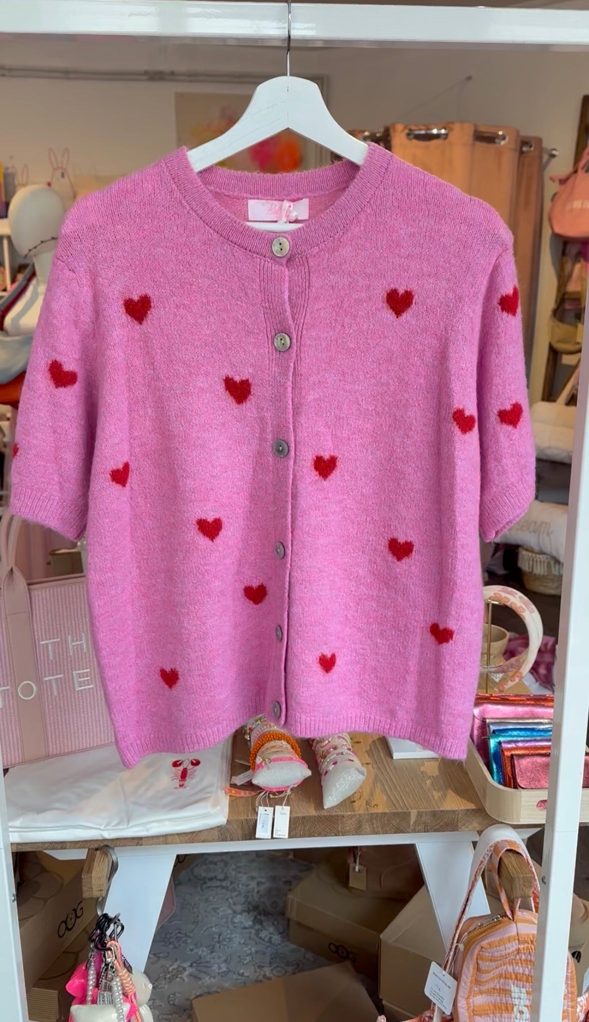 Süßer Kurzarm Cardigan mit Herzen und durchgehender Knopfreihe.
