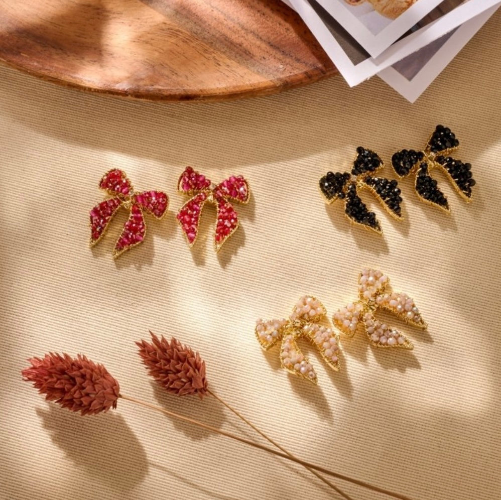 "Verleihe deinem Look mit unseren Ohrsteckern eine besondere Note! Unsere Schleifenohrstecker in verschiedenen Farben sind aus hochwertigem Metall und Glas gefertigt und haben eine Länge von 25 mm und eine Breite von 20 mm. Mit diesen süßen Accessoires kommst du garantiert groß raus! ;)"