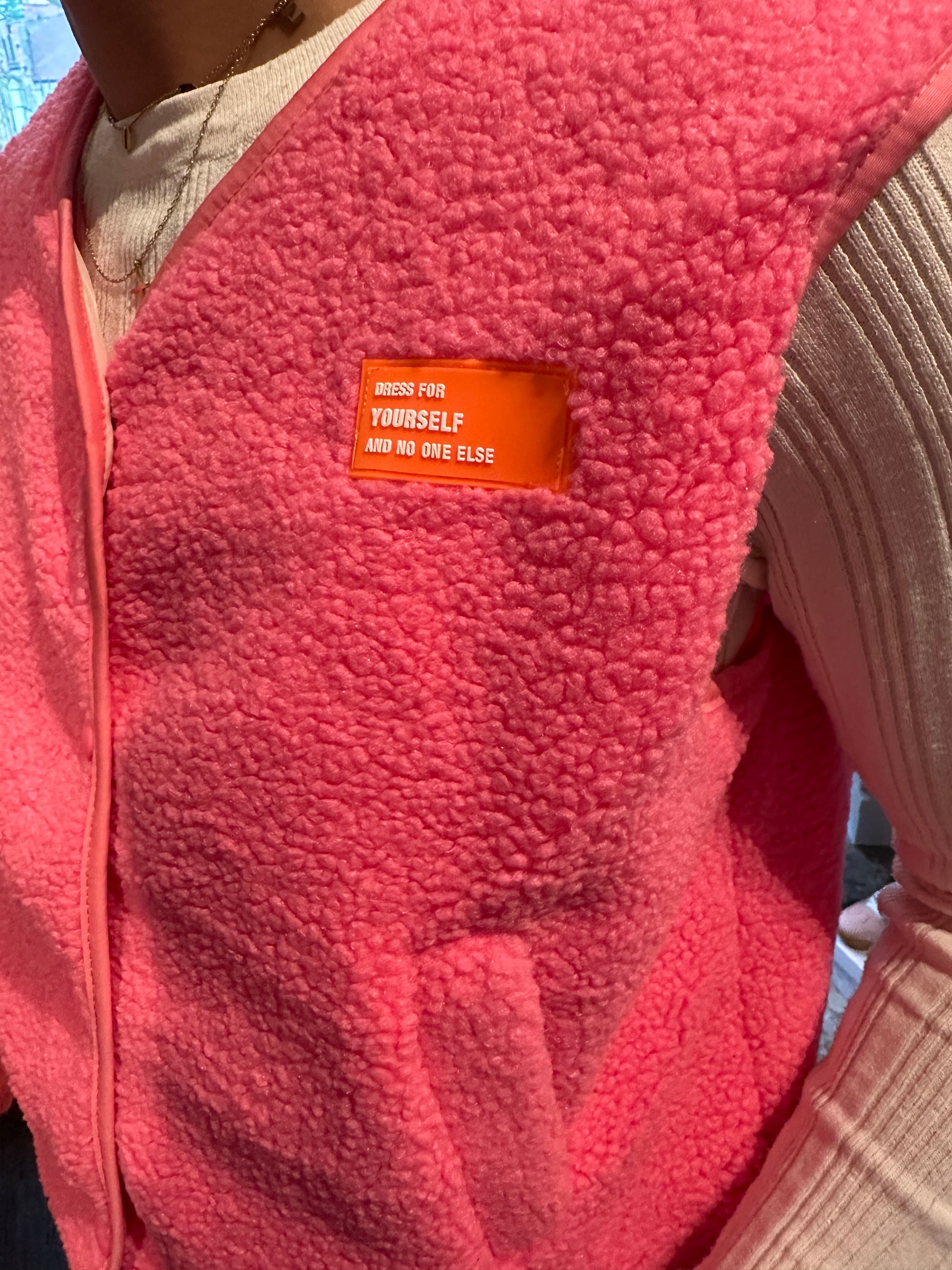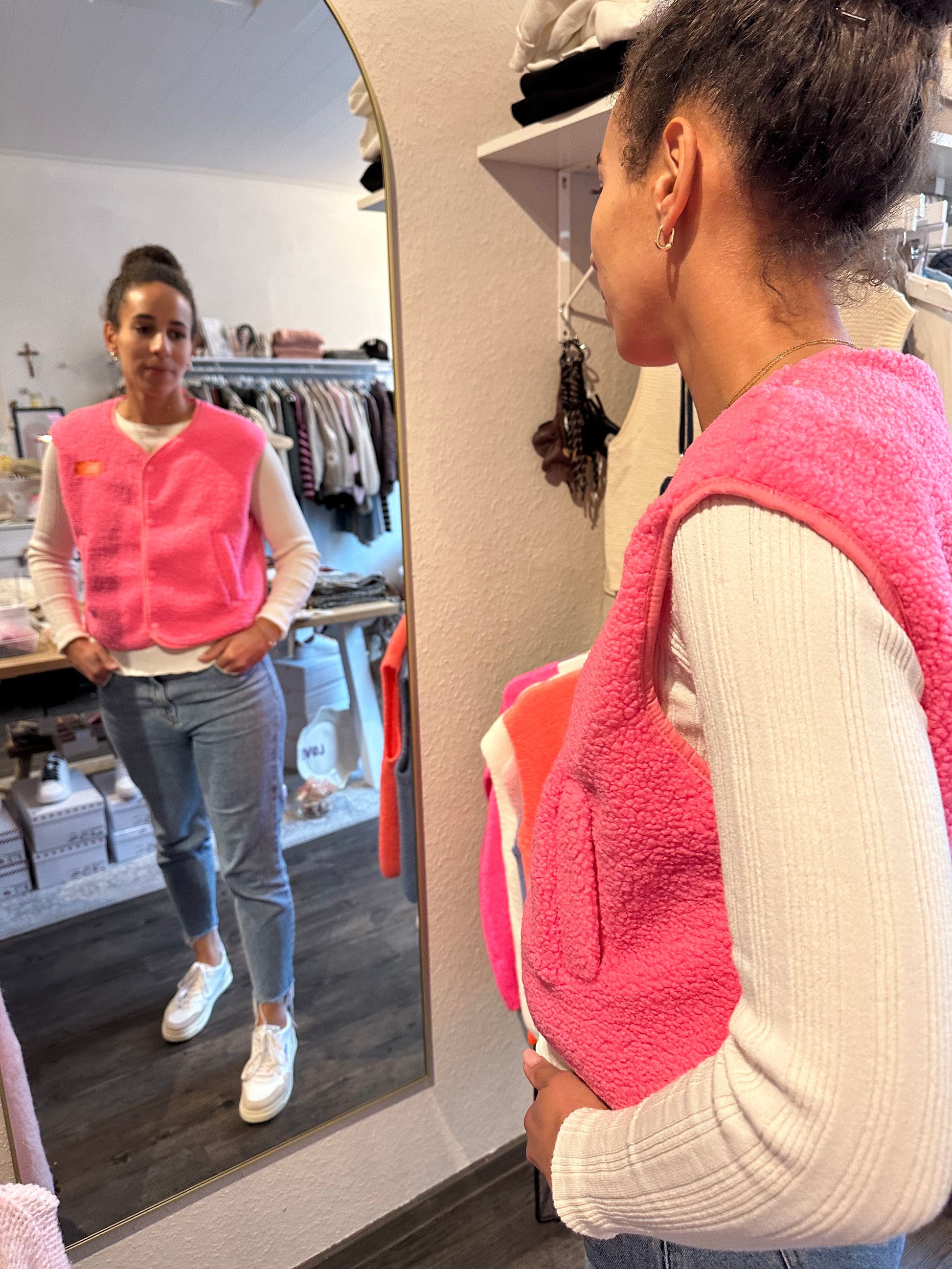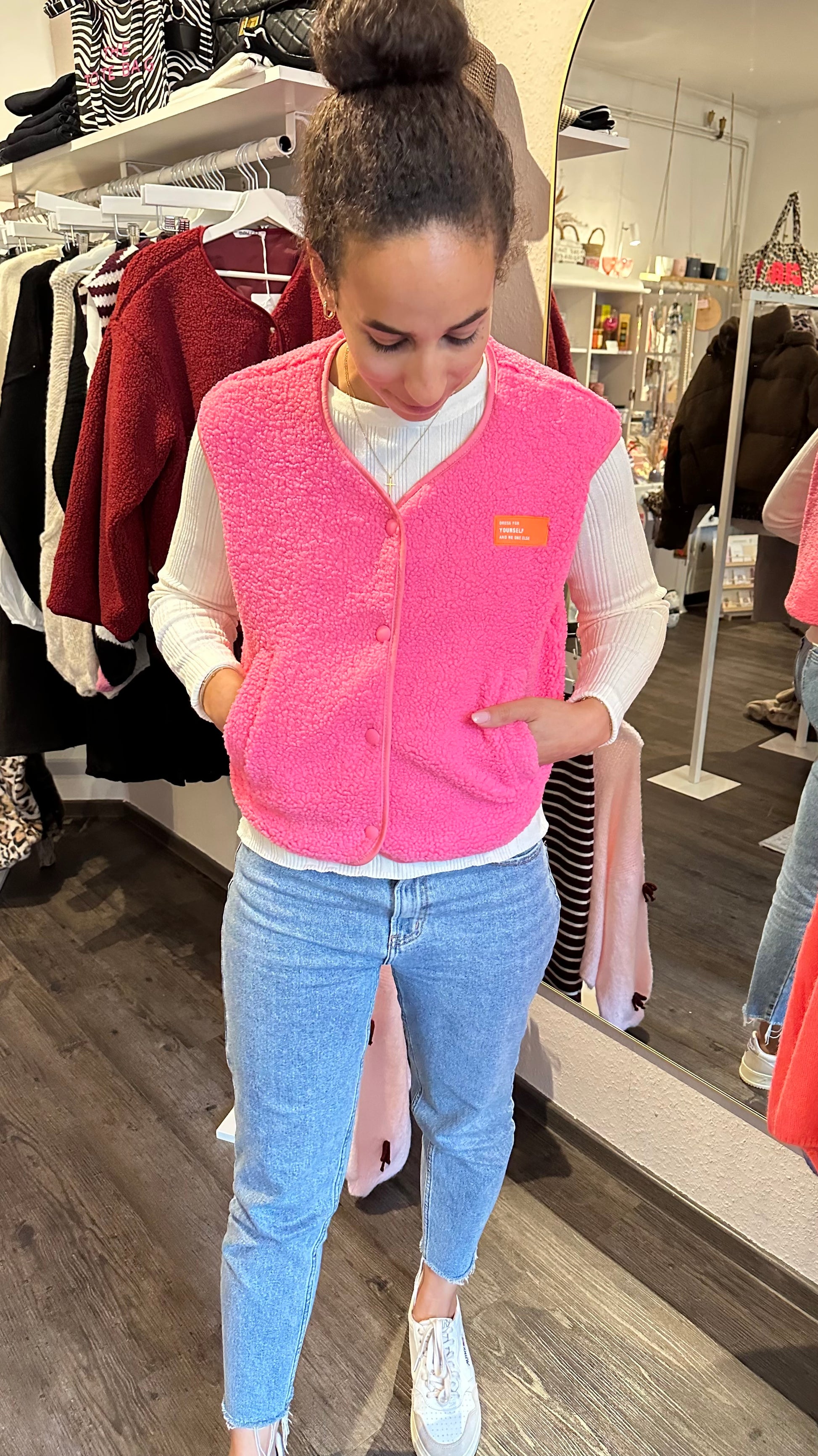 Hol dir den Teddy Weste Dress in Pink, Creme oder Weinrot! Mit Knopfleiste und seitlichen Taschen, sowie einem coolen Patch auf der linken Seite. Einheitsgröße 34-42 erhältlich. Lässig und doch stilvoll - Perfekt für jeden Anlass!